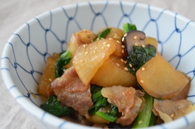 豚バラと小松菜の甘辛いため
