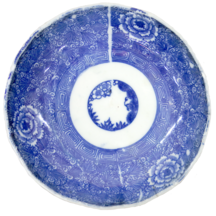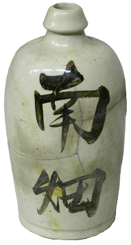 印判手の碗や皿、高田徳利(通い徳利・貧乏徳利)、瓶形徳利、クロム青磁、各種記念盃、除隊記念盃、印物の湯飲み など(写真左二つが型紙刷りの印判手、真ん中及び右から二つ目が銅板転写の印判手、一番右が高田徳利)