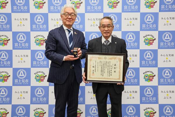 防犯栄誉銅賞を受章された松島 義昭さん(水谷東2丁目町会町会長)、地域安全功労者表彰を受章された新井 義三さん( 水谷第2町会町会長)、地域安全功労団体表彰を受章された勝瀬町会自主防犯パトロール隊(代表 岡田 正栄町会長)が表敬訪問されました。