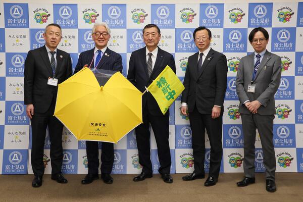 いるま野農業協同組合様より、児童用傘・横断旗などの交通安全啓発品をご寄贈いただきました。