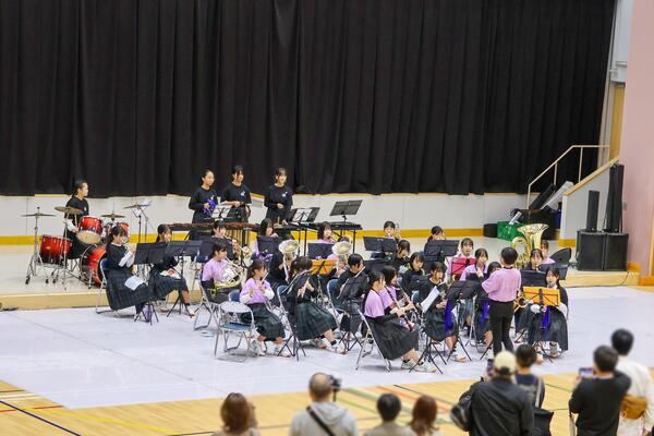雨天のため市民総合体育館で行われたステージでは、西中学校吹奏楽部によるオープニングからはじまり、市民団体によるダンスの発表など会場を盛り上げてくれました。