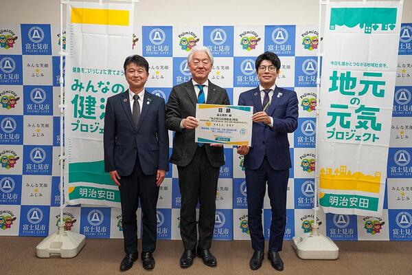 明治安田生命保険相互会社川越支社様から、「健康及び福祉を増進するまちづくり」を進めるために本年もご寄附をいただき、まちづくり寄附金受領式を行いました。