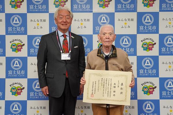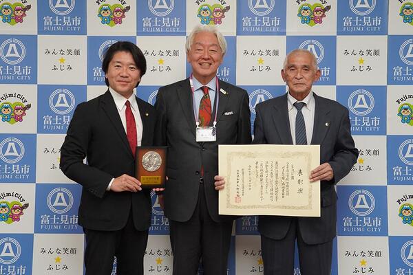 第57回シラコバト賞を受賞された太田 操さん、津坂 昭司さん、鈴木 榮さん、荒川 照子さん、峠 美代子さん、児童福祉ボランティアグループまいまいさん、つるせ台小学校学校応援団「みまもり隊」協議委員会さんが市役所を訪れ、市長への受賞報告会を行いました。