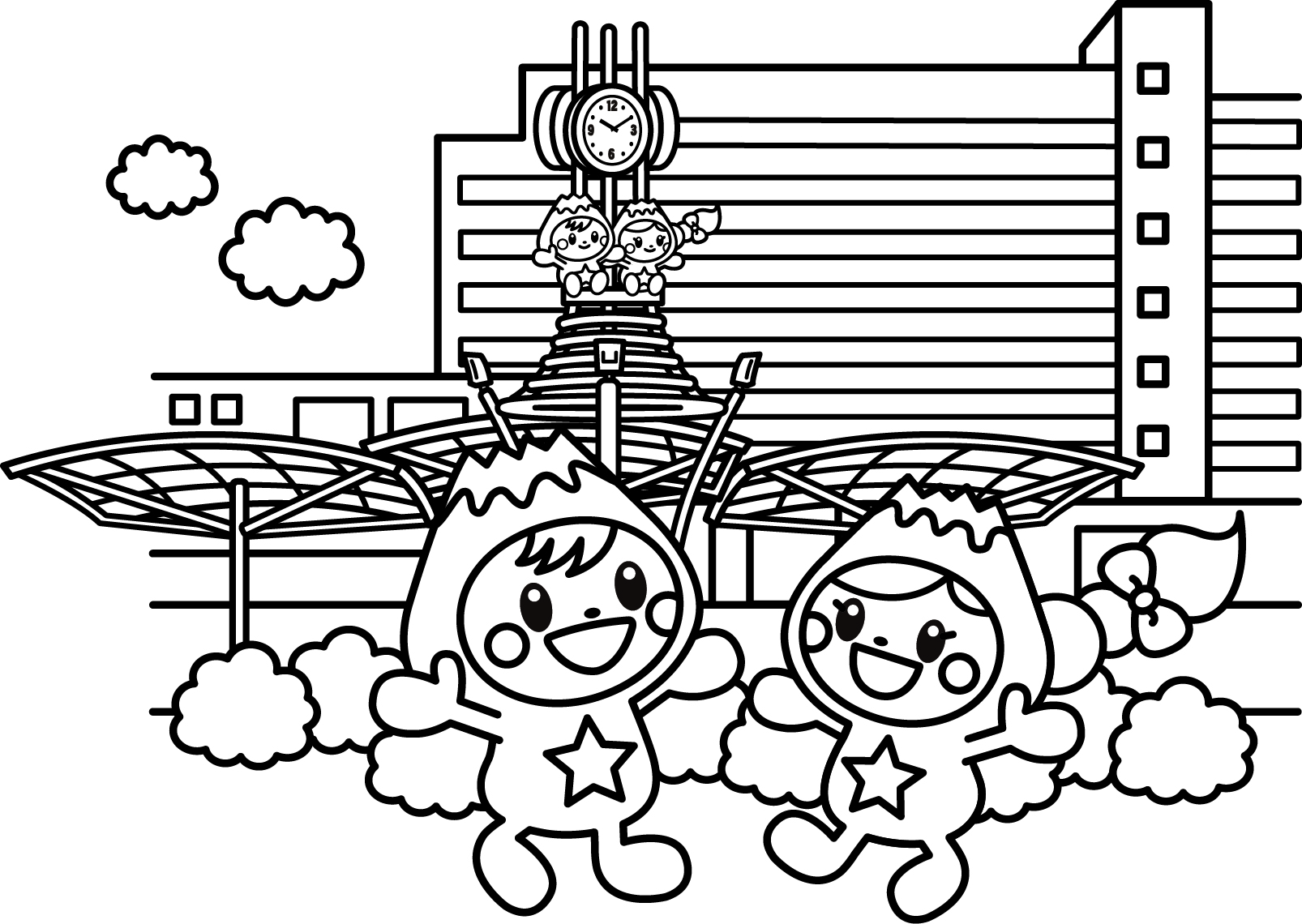 ふわっぴーのぬりえができたよ。ダウンロードしておうちでぬりえをたのしんでね。