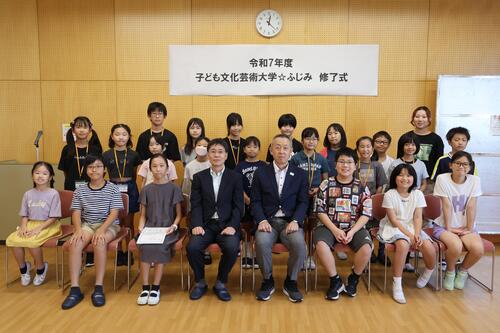 講義終了後は、学長の星野市長に代わり浅井副市長と副学長の山口教育長が出席し、修了式を行いました。みなさん全6回の講義、お疲れ様でした。講義では、初めて挑戦することも多かったと思います。みなさんにとって、なにか新しい発見はありましたか?子ども文化芸術大学☆ふじみが夏休みの楽しい思い出の1つになれば幸いです。これからの学校生活も新しいことにどんどん挑戦して、楽しんで過ごしてください。