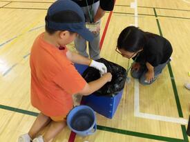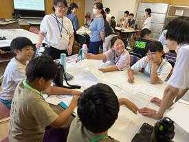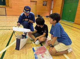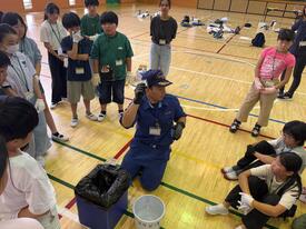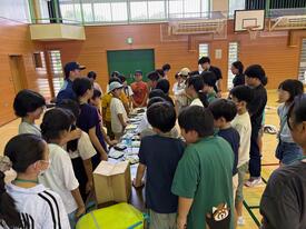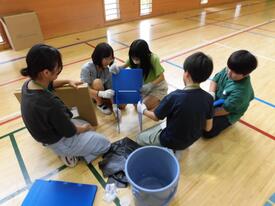 6日目は防災の講義を行いました☆まず初めに講義を聞いて災害時にはどのような備蓄品が必要かを考えます!災害時には食料や生活に必要な物品だけではなく、心のケアにつながるものを用意しておくことも大切だというお話を聞き、カードゲームや家族の写真などがあるとよいのではないかという意見がでました!次に、簡易トイレを組み立てます!簡易トイレはプラスチック段ボールでできているにも関わらず、固くて頑丈な作りで驚きました。簡易トイレにビニールを取り付けて水を入れ、凝固剤を入れると水があっという間に変化します!災害にどのように備えるべきかを学ぶことができました。