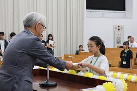 そして、いよいよ最後は修了式。8日間の講義を通して、お友達を作り、いろいろなことを学び経験したみんなに、学長である星野光弘市長から修了証書が授与されました。みんな、修了おめでとう!